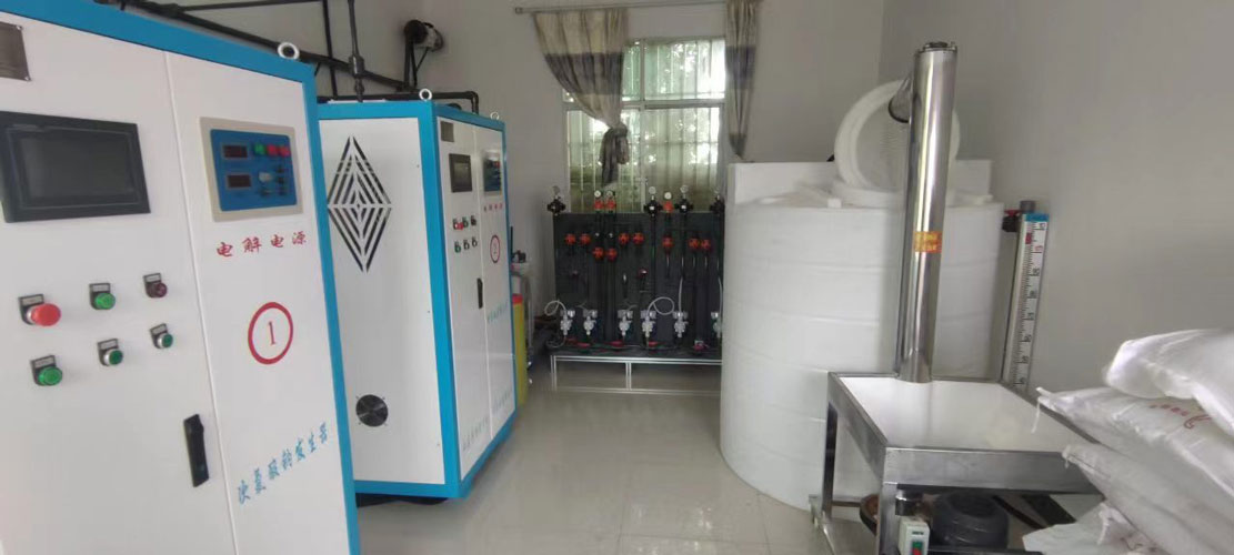 1, Hệ thống tiền xử lý của máy tạo natri hypoclorit chủ yếu bao gồm thiết bị làm mềm nước, bể chứa nước trong,